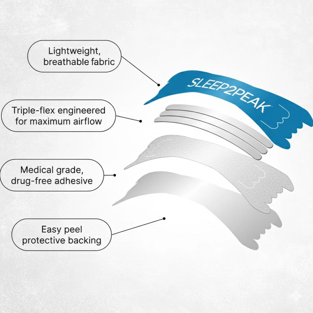 These insights are based on scientific research around nasal breathing, which sleep2peak nasal strips are designed to support. Our nasal strips are not medical devices and are not intended to diagnose, treat, cure, or prevent any medical condition.